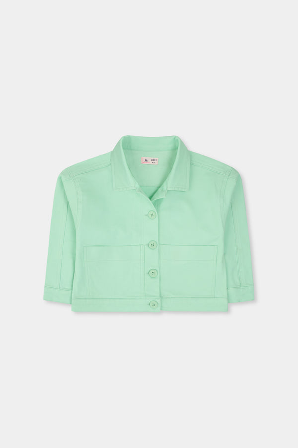 Made from soft mint twill fabric, this girls’ coat features a chic collar and button-up front for an effortlessly polished look. The cuffed sleeves with button details offer a snug fit, and two front patch pockets provide added utility. Whether for casual outings or formal events, this coat keeps your girl looking stylish and comfortable.